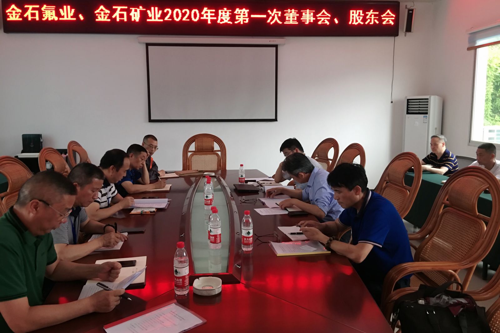 2020年6月8日下午1:30,在綜合樓三樓會議室召開公司2020年第一次董事會、股東會,公司全體董事及各股東出席會議。會議協商表決了金石氟業(yè)、金石礦業(yè)公司各項重大生產經營事項。