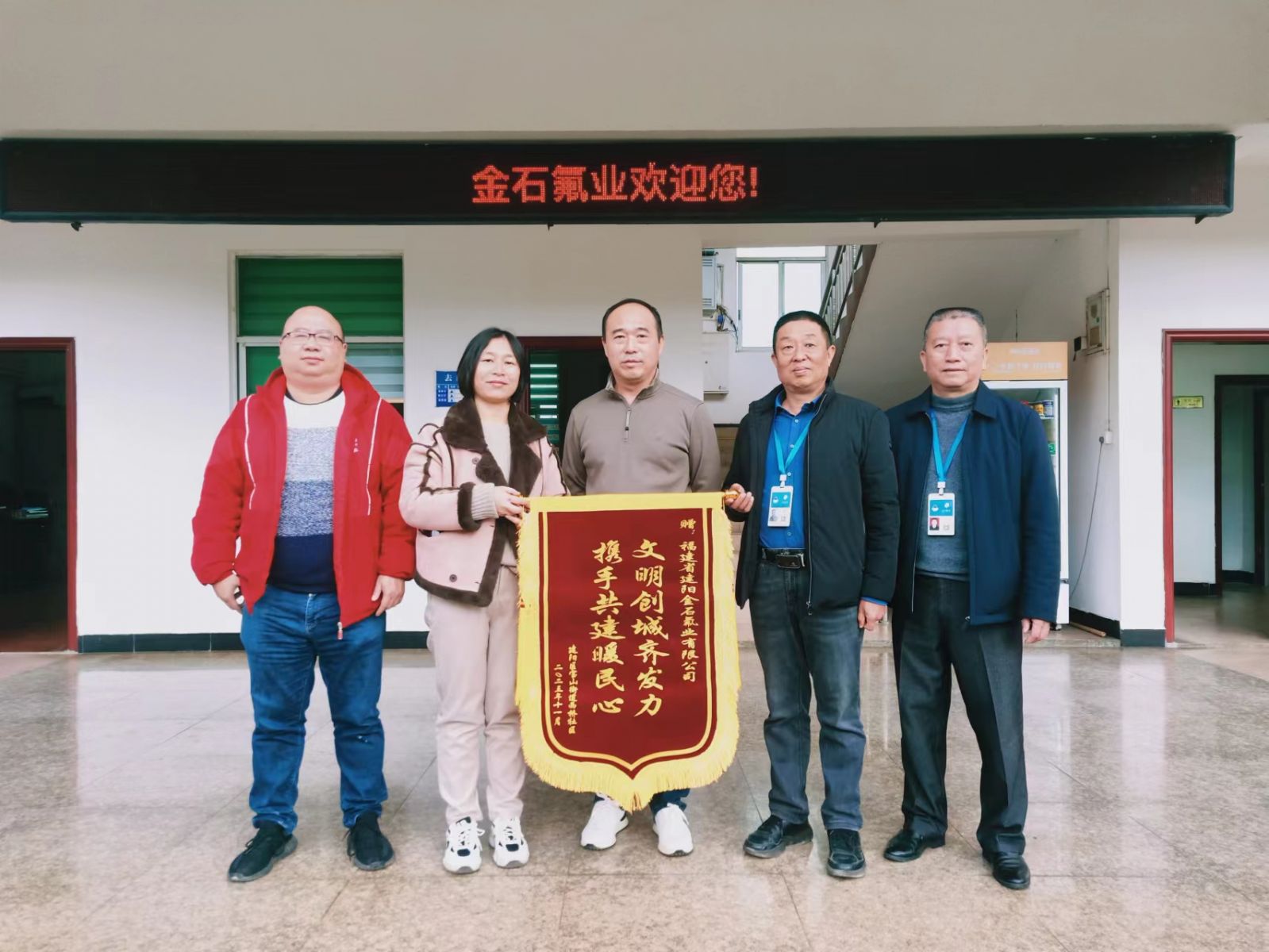 12月5日上午,建陽區(qū)寶山街道西橋社區(qū)居委會(huì)工作人員給公司送來“文明創(chuàng)城齊發(fā)力,攜手共建暖民心”錦旗,表達(dá)誠摯的謝意,居委會(huì)工作人員表示,社區(qū)一定會(huì)將愛心資金用到社區(qū)治理的實(shí)處,創(chuàng)建轄區(qū)優(yōu)美環(huán)境,助推全區(qū)創(chuàng)建文明城市工作。